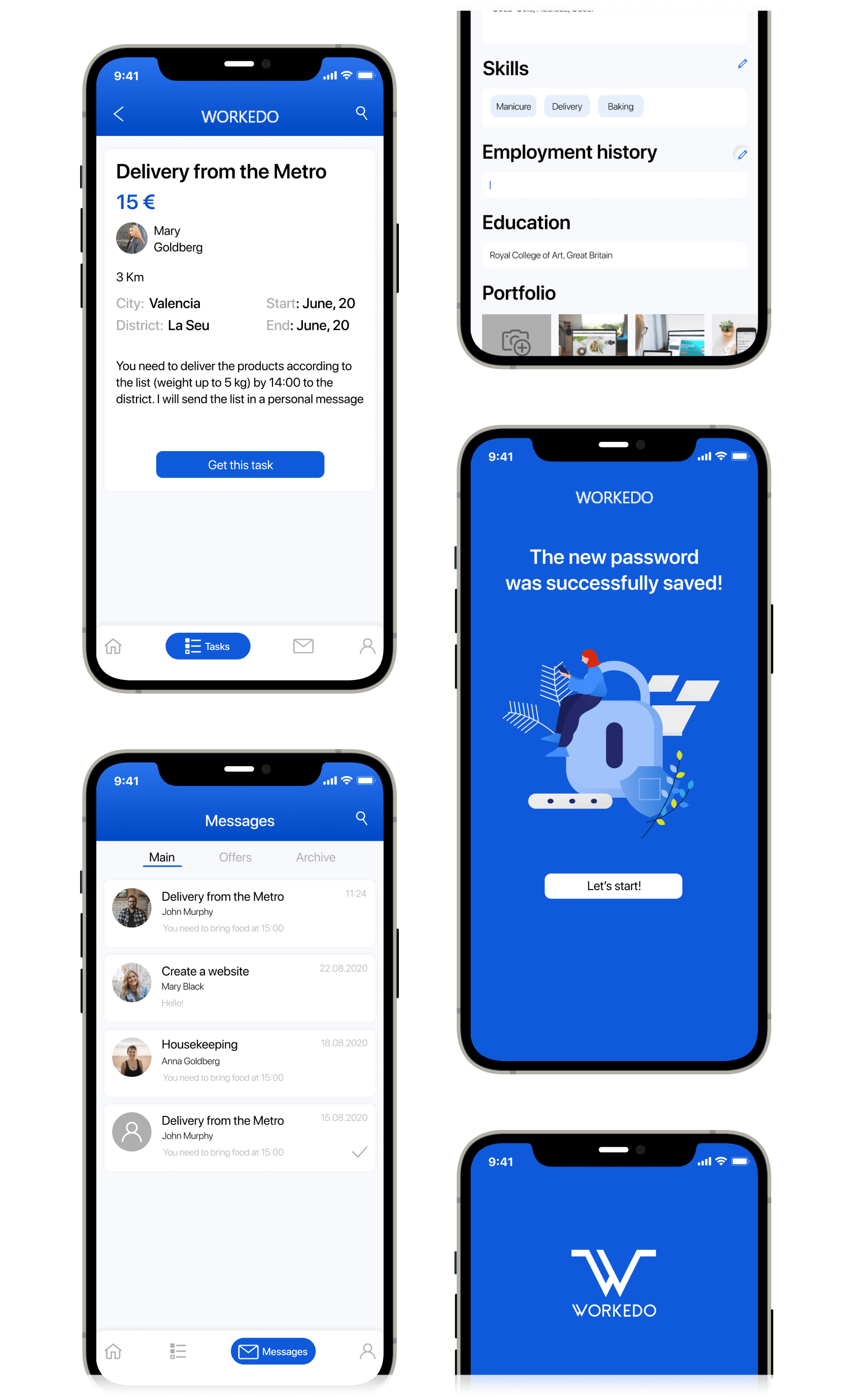 Spanish searching service for professionals or craftsmen specializing in various fields to solve your problems. Application functionality: chat, order tracking system, payment and feedback system, referral system.